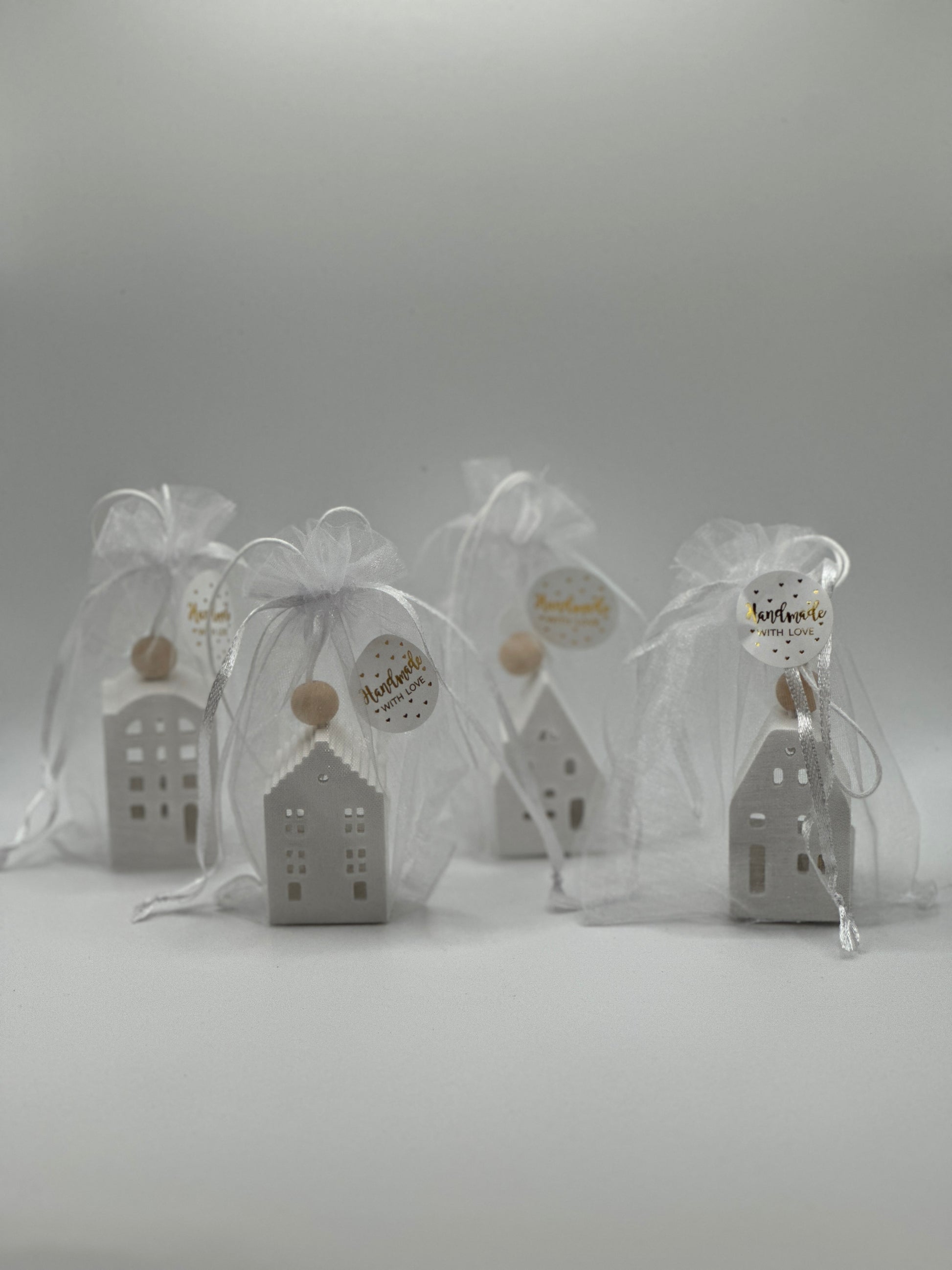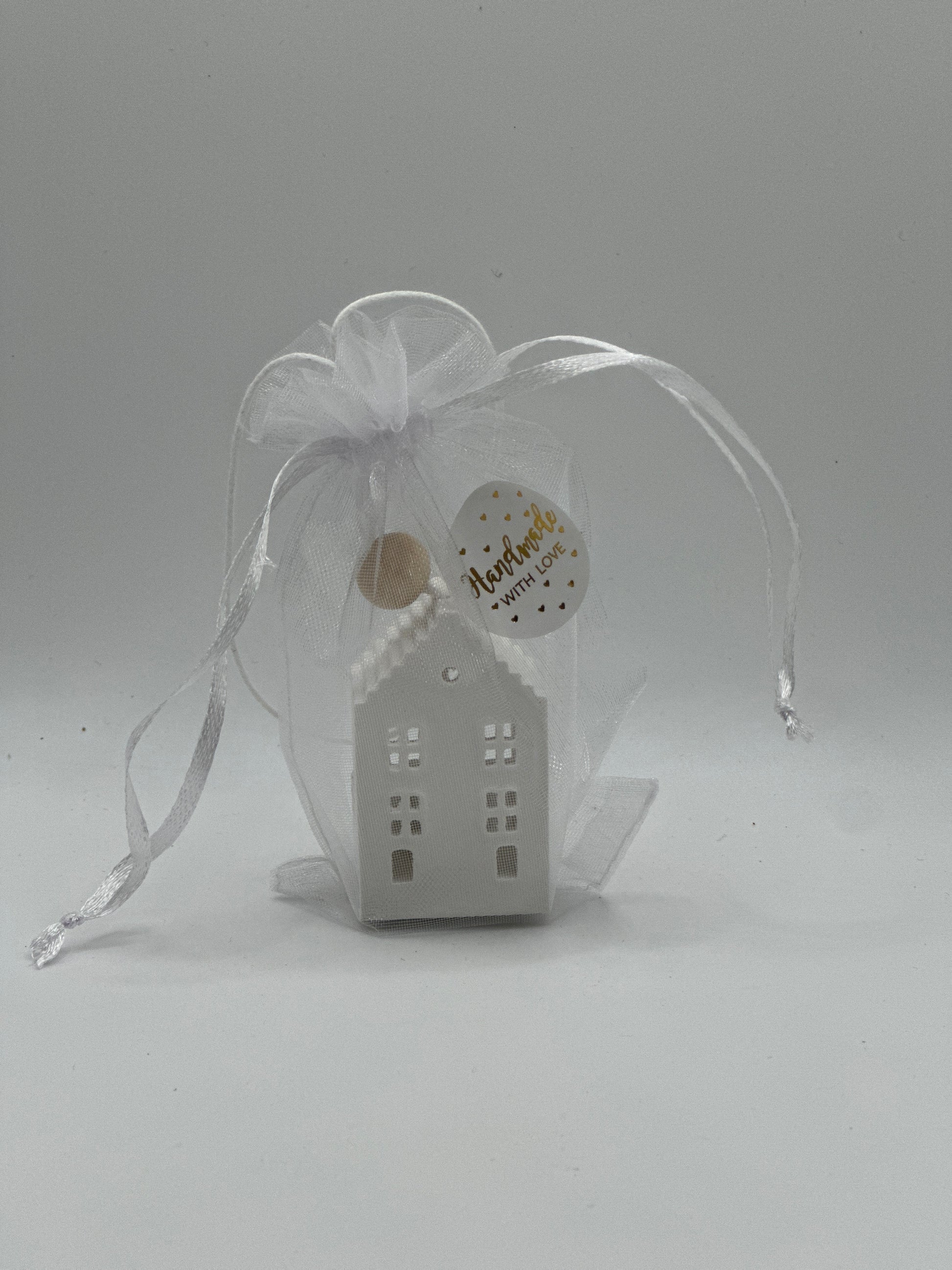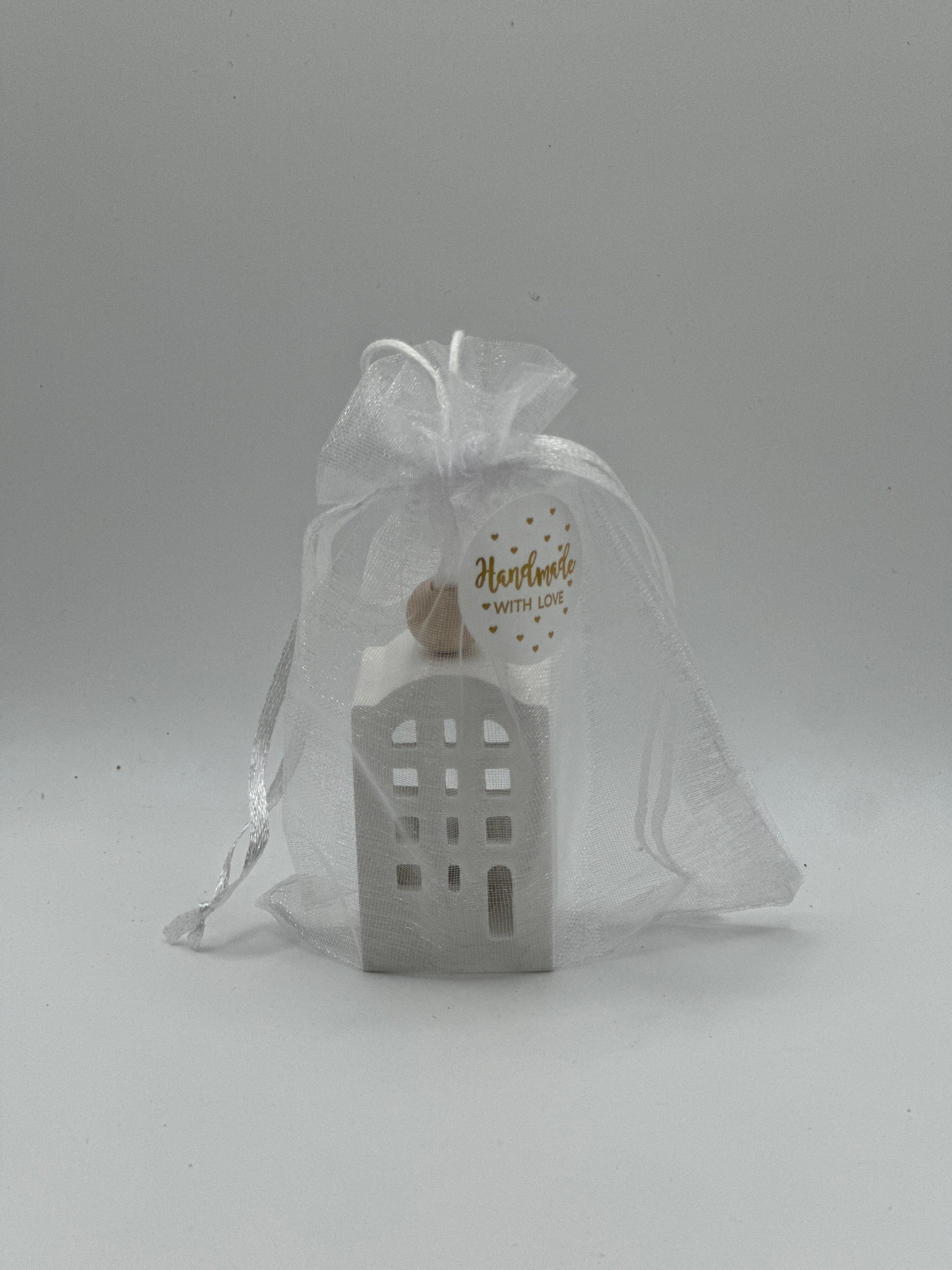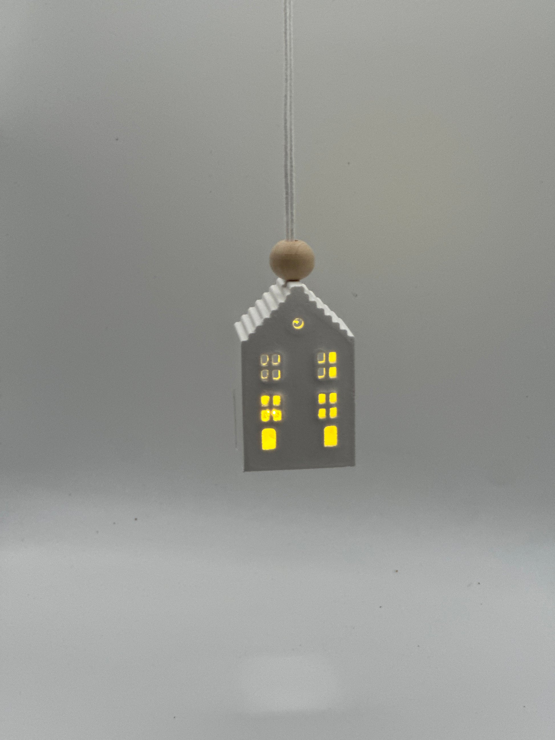 Dieses kleinen Giebelhäuser ist in 5 verschiedenen Varianten erhältlich und eignen sich hervorragend als kleines Geschenk oder Mitbringsel. Im Inneren befindet sich ein dezentes Ballonlicht, und das Haus wird in einem praktischen Säckchen geliefert. Mit der angebrachten Kordel lässt es sich mühelos zum Beispiel an einem Fenster oder am Tannenbaum aufhängen. Dieses Modell gehört zu unseren beliebten Bestsellern.