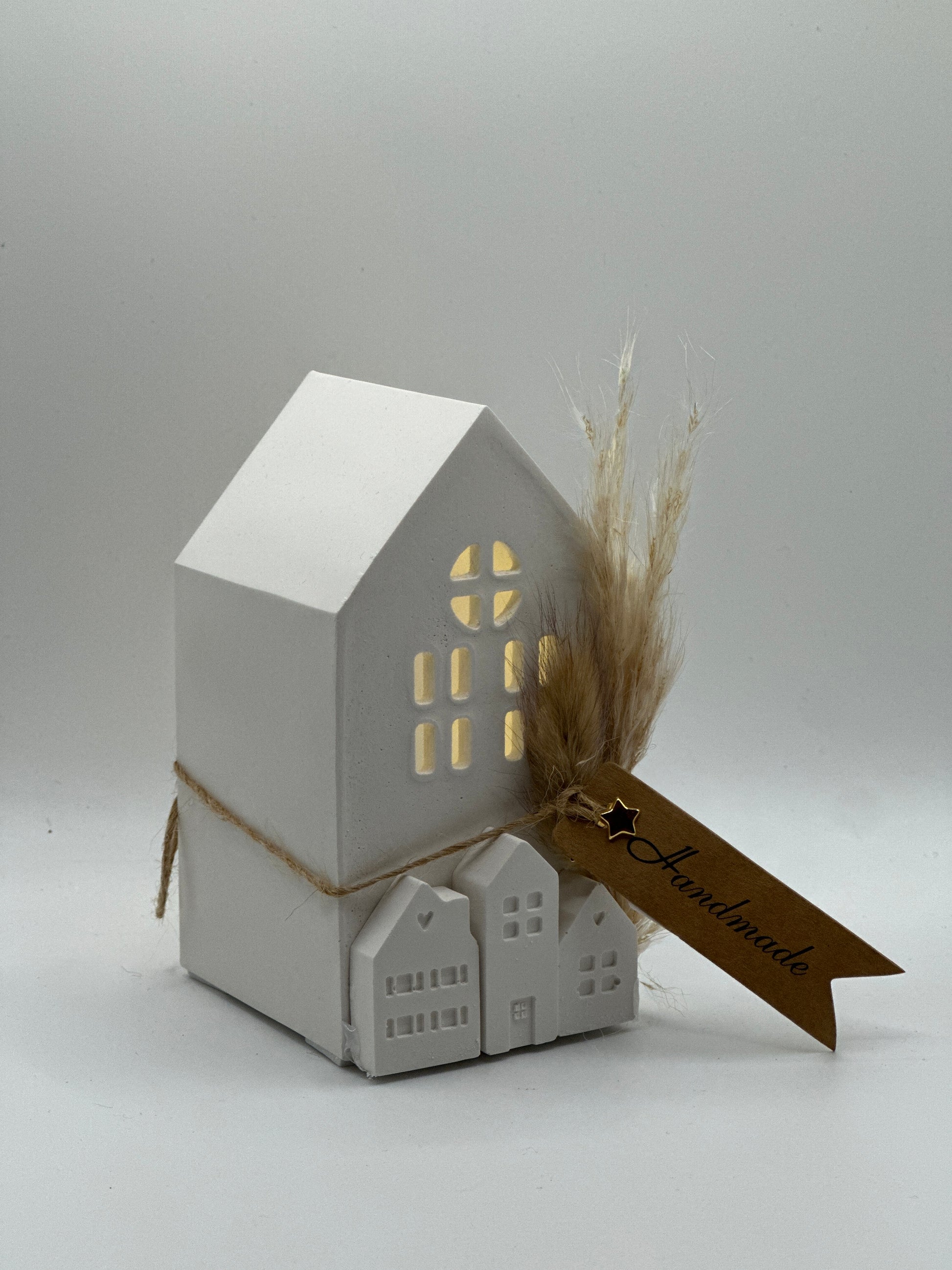 Lichterhaus groß mit Puschel und kleiner Häuserfront